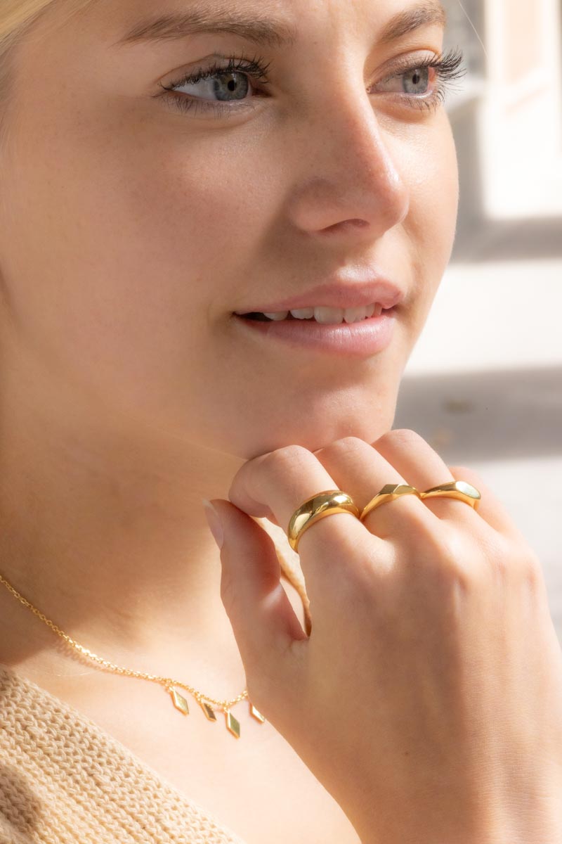 Die 18karätige Vergoldung schützt einerseits das Sterling Silber vor dem Anlaufen, wird aber vor allem für den edlen Echtgold Look verwendet.